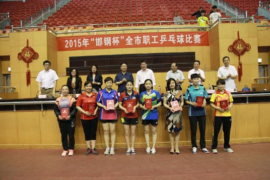 5月19日至22日,市总工会在邯钢体育馆举办了全市职工乒乓球比赛,我公司员工胡圣杰和王少华代表公司参加了女子单打和男子单打的比赛。经过激烈角逐,胡圣杰一路过关斩将获得了女单冠军!