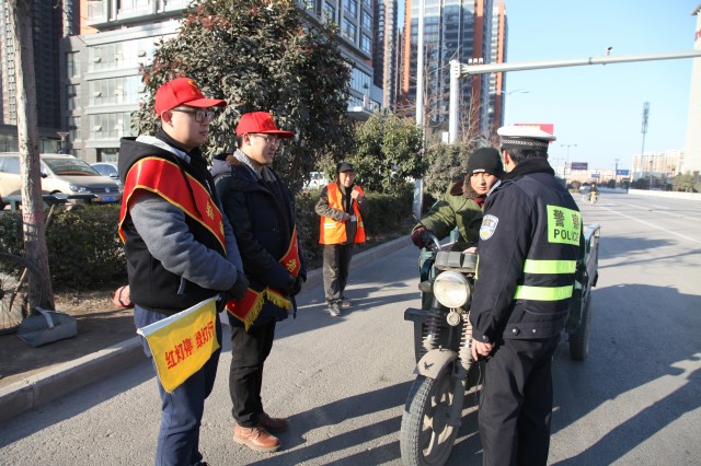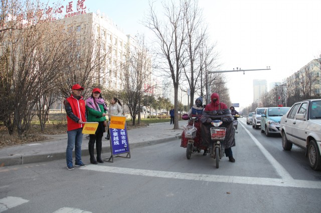 2015年12月17日,我公司志愿者服务队积极参与邯郸市创建文明城市活动, 在东柳林大街与从台北路路口,协助交通警察普及交通法规知识,维持交通秩序,引导机动车和行人遵守交通法规,倡导“文明交通,伴我同行” 推进全市文明建设。