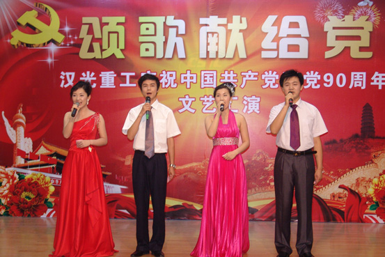 2011年6月24日下午3时,公司第四会议室灯火辉煌,喜气洋洋,公司领导、驻厂军代表、中层领导、党支部书记、分工会主席、车间主任、团支部书记与演员共二百余人欢聚一堂,共同庆祝中国共产党建党90周年。公司党委书记柴文生首先作了重要讲话,他热情讴歌了党的90周年的光辉业绩,同时对公司各级党组织和全体党员提出了在新形势下做好各项工作的新要求。