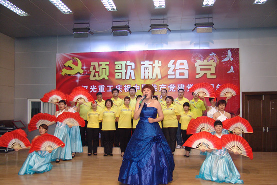 文艺汇演以一曲《祝福祖国》开场舞拉开序幕,接着诗朗诵、舞蹈、独唱、表演唱、歌伴舞、大合唱等二十个节目相继登场,竞显风采,一首首颂歌唱不完党的恩情、一段段舞蹈跳出了对党的热爱。最后公司领导与驻厂军代表登台与全场观众共同高唱《没有共产党就没有新中国》把演出推向高潮。经评委综合评定,评出了一、二、三等奖节目。