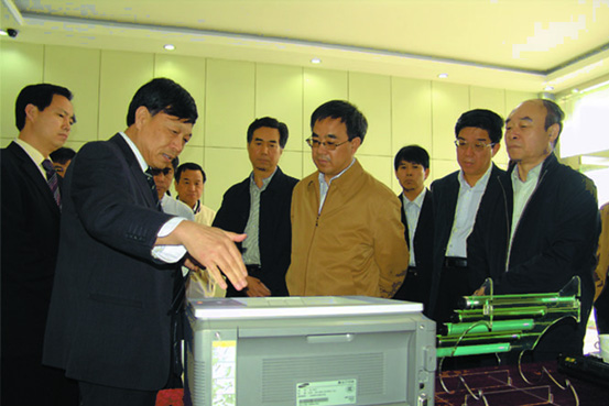 上午8:40分,阵雨淅淅未停,胡春华代省长一行冒雨来到光导公司。我厂厂长兼党委书记柴文生热情地迎上前去,与到来的领导——握手。在光导公司前厅,柴文生厂长向胡春华代省长介绍了中船重工“兴船报国,创新超越”的集团精神。胡春华听后高兴地说,河北有几家中船重工的企业,希望你们发挥中央企业的优势,引领地方经济,把企业做大做强。接着柴厂长介绍了有机光导鼓的性能和特点,并说在省市领导的大力支持下,有机光导鼓产业有了大幅度的增长,前景非常广阔。胡春华说,有机光导鼓市场需求很大,你们要加大投入,加快生产,把产业化规模做大,抢占市场先机。在生产现场,胡春华代省长边看边问,产品质量怎样,生产能力如何,柴厂长一一作了回答。胡春华说,现在科学技术飞速发展,我们要努力赶超世界先进水平,要有自己的知识产权,提高核心竞争力,要在多个领域实现技术突破,为国防建设和民族工业的发展做出新的贡献。最后,胡春华代省长愉快地和柴文生厂长合影留念,亲切话别。